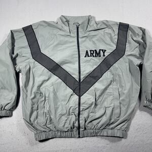 US Army Physical Fitness Uniform Jacket Mens Large Gray Full Zip Windbreaker