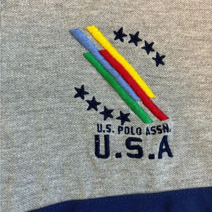 US Polo Assn Ralph Lauren Grey Blue Color Block Embroidered 2 Button Polo Size Large - Flag on the Sleeve - Good Condition