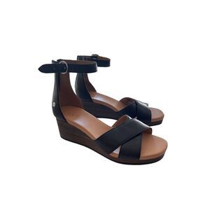 Ugg Womens Black Eugenia Leather Back Zipper Ankle Strap Wedge Sandals Size 6.5