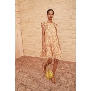Ulla Johnson Adele Mini Dress Ruffle Sleeves in Meadow Orange/Yellow Size 0/XS