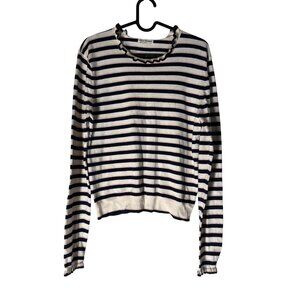 Ulla Johnson Navy Pink Cream Striped Cotton Cashmere Ruffle Trim Sweater Large