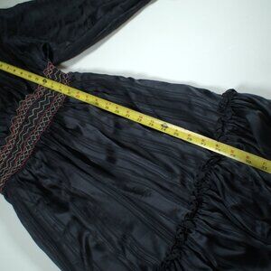 Ulla Johnson Odette Smocked Silk Midnight Nav Mini Dress Ruffle Boho - Size 0 - In excellent condition, like new - Self: 100% silk - Lining: 100% poly - Made in India - Dry clean only - Fully lined - Embroidery stitching detail along waist - Hidden back zip closure - Ruffled hem
