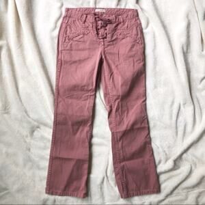 In good preowned condition. Lace up detail at the front. Dusty pink color.