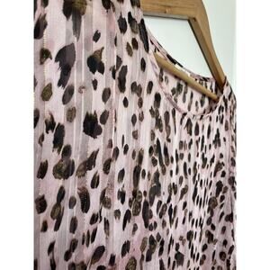 Umgee Metallic Cheetah Print Pink Brown Gold Ruffle Boho Glam Top Size Small