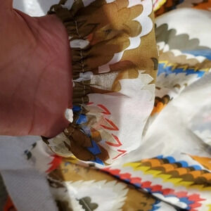 Lovely light material in a poet style with scalloped bottom. All the details are in the pictures.