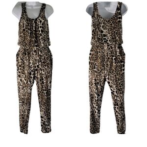 Unbranded Animal Print Sleeveless Jumpsuit Sz M Elastic Waist Pocket Soft Comfy