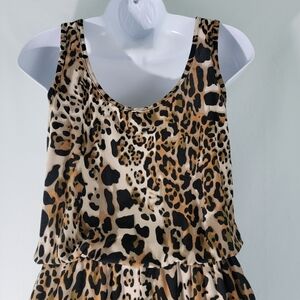 Unbranded Animal Print Women's Sleeveless Jumpsuit Sz Medium with Elastic Waist, Midi Length, Side Pockets. This jumpsuit is super soft and comfy. Feels velvety.