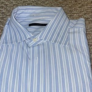 Ungaro Blue & White Striped Long Sleeve Button Down, 16.5. Recently back from dry cleaner. Great condition