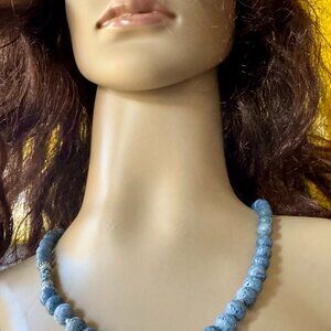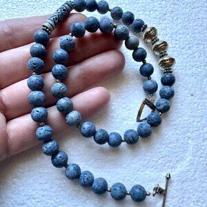 This beautiful Blue Sponge Coral necklace is 17" long with sterling silver connections.