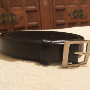 A very nice black leather contemporary belt that can be worn casual or dressy attire. Light wear on edges of belt.