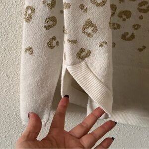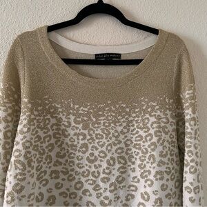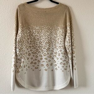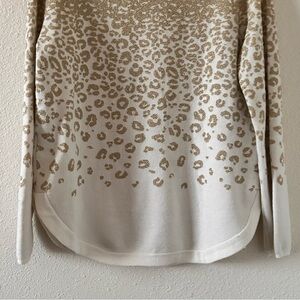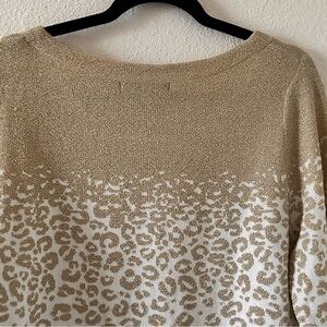 United Stares Sweaters Cheetah Print Cream Gold Women Size Large in great condition/ scoop hem/ soft stretchy knit/