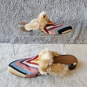Universal Threads Women Bibiana Chevron Faux Fur Lined Mules Size 7.5 Multicolor