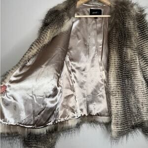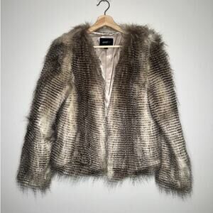 Unreal Fur Faux Fur Crop Jacket Neutral Tones Clasp Front Size Medium