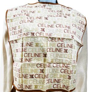 # 63 Unused Celine Paris Mini Scarf/Handkerchief Cotton 19" Square ,made in Japan, color beige brown logo designs.