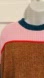 Chic and cozy cropped knit sweater. Features pink, brown, and teal colorblock design. Perfect for casual wear. Perfect condition. New without tags. 10 inch side slit on both sides Flat lay measures pit to pit 34 inches Length 18 inches. New without tags