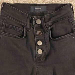Sleek high-rise jeans by Uterque. Classic black color. Perfect for versatile styling.