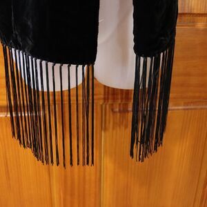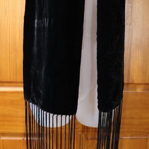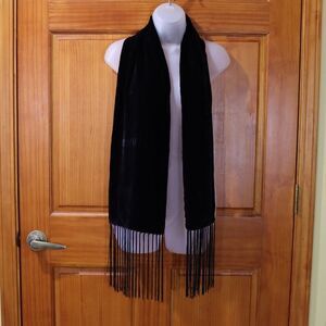 V. Fraas Black Velvet Long Fringe Wrap Scarf Elegant Evening Accessory