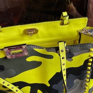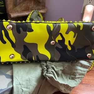 Valentino Garvani Camouflage Yellow Tote with  Strap, dust bag, original packaging.