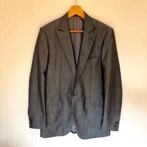 Grey men’s blazer from Valentino. Size tag missing but fits like a large or 42/44. Materials tag also missing, but feels like a lightweight jacket.