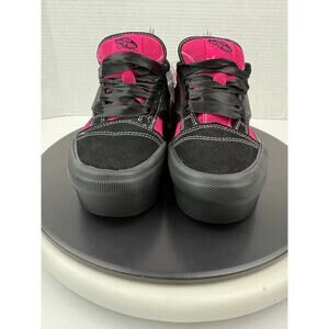 VANS Knu Skool Skate Platform Stacked Womens Size 7.5 Sneaker Black Pink Satin