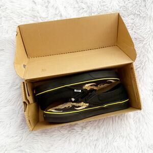 Amazing limited edition pair of slide on sneakers from VANS! Men's size 10, tried on once in the house. In like new condition. Black with a golden yellow graphic this was a Collab with Black Claw Tattoo. These are so unique and from what I understand from Vans, they didn't make many. Vans Box included.