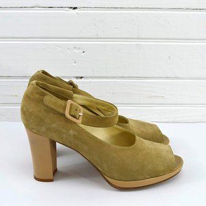 CONDITION: GENTLY USED/ SIGNS OF WEAR; SCUFFS/ MARKS TO SOLES/ UPPER/ HEEL, WORN INSOLES. HEEL HEIGHT: 3.5''/ PALTFORM: .75''. FABRIC: LEATHER. *MADE IN ITALY*