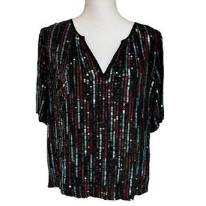 VELVET BY GRAHAM AND SPENCER Multicolor Sequin Short Sleeve Top Medium