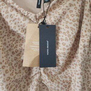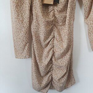 NWT Vero Moda Cheetah Print Animal Print Dress XS Rouching Dress Nomad 10272530