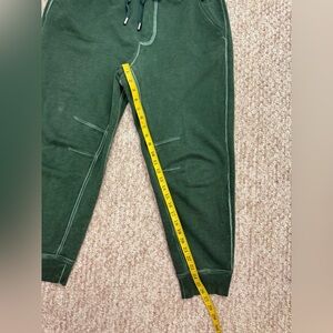 Stylish green jogger pants with drawstring waist. Perfect for casual wear pats has some dust spots and right hand back pocket small area were stitched not very noticeable see pictures.