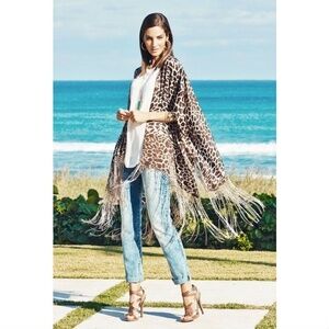 💕VERONICA M💕 Fringe Leopard Print Kimono Medium NWOT