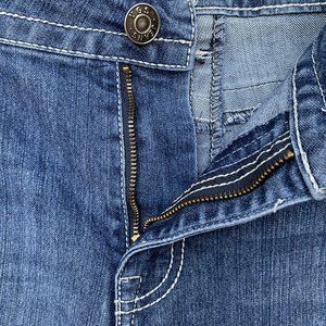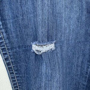 VGS Women Jeans Size 16 Blue Slim Boot Embroidery Distress Stretch 5 Pockets