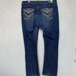 VGS Women Jeans Size 16 Blue Slim Boot Embroidery