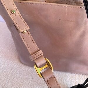 VIA REPUBBLICA LEATHER DRAWSTRING NEUTRAL SHOULDER HOBO BAG EUC