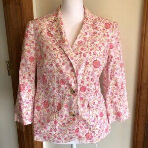 VICTORIA'S SECRET Linen Floral Print Lined 3/4 Sleeve Blazer 4