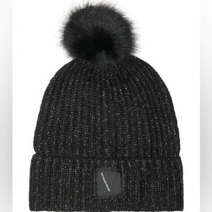 VICTORIA’S SECRET Women’s Ribbed Knit Metallic Pom Beanie Hat in Black/Gold