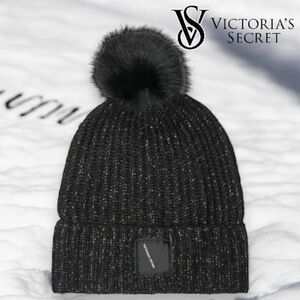 VICTORIA’S SECRET Women’s Ribbed Knit Metallic Pom Beanie Hat
