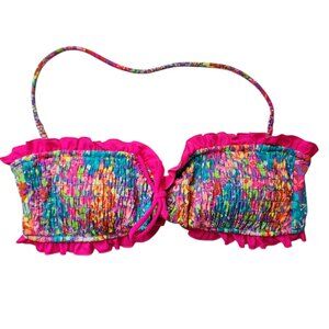 VICTORIA’S SECRET Y2K Smocked Bikini Top Pink Ruffle Trim Bandeau M