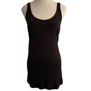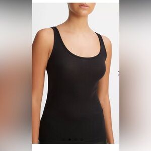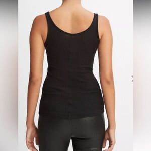 Crafted in soft, finely ribbed pima-modal; scoop neck tank with an elongated silhouette and center back seam detail.