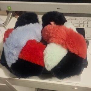 VINEYARD VINES FAUX FUR SLIPPERS MULTI COLOR SIZE 6