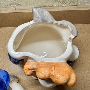 VINTAGE, 1993, WARNER BROTHERS, LOONEY TUNES, BUGS BUNNY, BASEBALL, COOKIE JAR. CERAMIC JAR DEPICTS BUGS BUNNY IN A BASEBALL UNIFORM, COMPLETE WITH BASEBALL & GLOVE. COLLECTIBLE ITEM. UNDER BUGS BUNNY HEAD, LOOKS TO BE A DEFECT IN MANUFACTURING(shown in picture). THERE IS ONE TINY CHIP ON BASE(shown in picture). MEASURES 9”W X 11”H