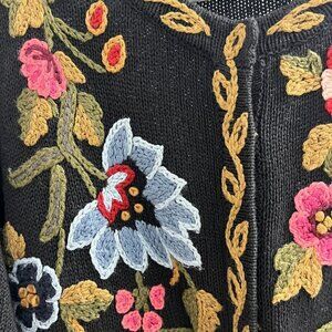 VINTAGE 90s Black Floral Embroidered Knit Long Sleeve Beautiful Cardigan Sweater Size Medium