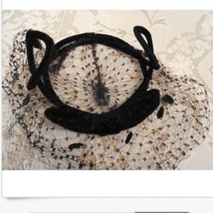 VINTAGE BLACK TULLE FASCINATOR HAT