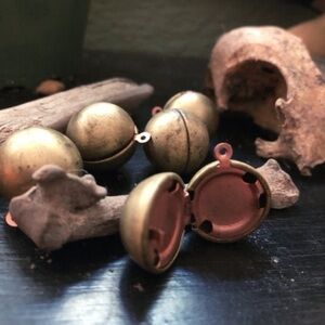 Vintage Brass Ball Lockets . Witch . Witchcraft . Mourning Jewelry . Memorial Jewelry