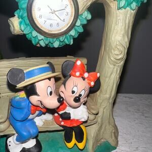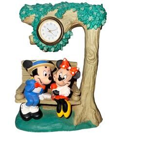 VINTAGE DISNEY -MICKEY AND MINNIE MOUSE - SITTING ON BENCH UNDER TREE WITH CLOCK