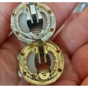 VINTAGE Faux Pearl Gold Clip-On Earrings Statement Bold Classic Mishmatch
