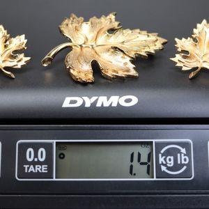 VINTAGE MAPLE LEAF *signed* Glittering Gold Plated Earrings and Brooch in a Spectacular Demi Parure (Jewelry Set) This parure would make a FABULOUS gift for Mother's Day or the perfect addition to your Spring wardrobe. These glittering 18K gold plated, maple leaf, push back, pierced earrings measure 1.5"L x 1.25"W and they are NOT heavy. The massive, matching brooch measures 2.5L x 2.75"W and has a perfect, secure, rollover clasp.