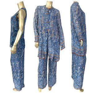 Now this is a set! Finding a two-piece set is exciting-a 3-piece set is rare but this is my 1st time finding a 4-piece set! Pants, sleeveless top, jacket and scarf