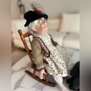VINTAGE Porcelain Grandma and Grandpa Dolls Set 16" Matching Rocking Chairs