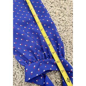 VINTAGE RETRO MOD 70s LORAC ORIGINAL BLUE LONG SLEEVE POLKA DOT DRESS UNION MADE SIZE