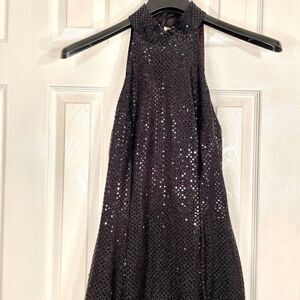 VINTAGE ROBERTA HIGH NECK SLEEVELESS BLACK SEQUIN GOWN 12